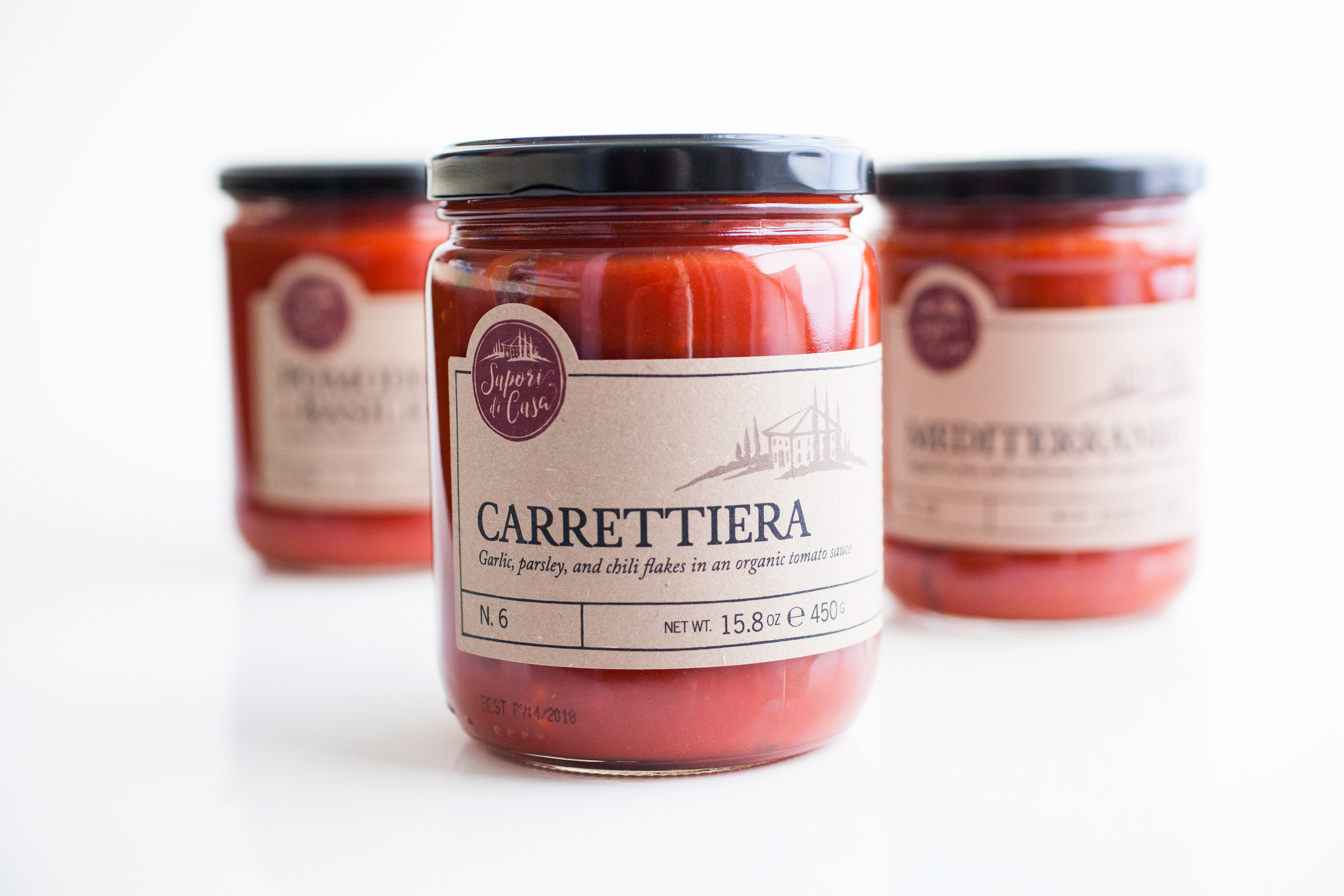 The packaging design goal for Sapori di Casa's Italian sauces was to conjure the look and feel of something one might find at a market in Italy.